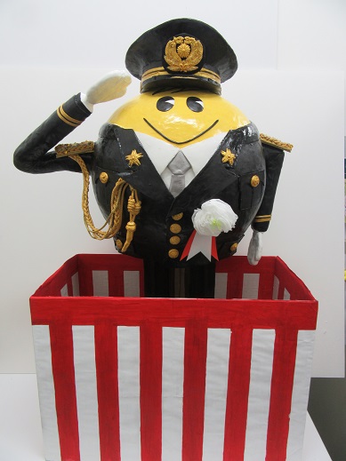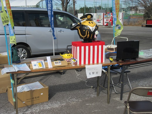 この年頭視閲式に向けて職員が手作りした、「追放くん´(ダッシュ)年頭視閲式Ver.」(立像の高さ約80cmで、歴代最大サイズの人形です。)等を展示しましたが、多数の方が足を止めて見入り、写真撮影を行うなど、県民の暴力追放・薬物乱用防止意識の醸成を図ることができました。