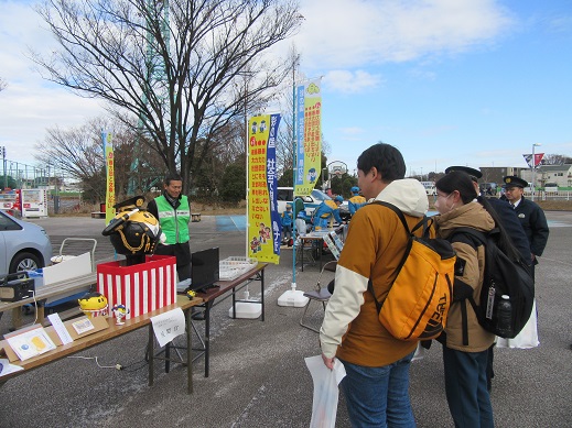 会場の隣にある「ふれあい広場」にて、埼玉県警組織犯罪対策第一課・当センター職員らによる、暴力団追放・薬物乱用防止キャンペーンを行い、来場者に対して冊子や青少年向けマンガ、啓発品等を配布しました。