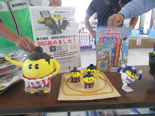 8月31日、アイル・アリーナウィングハット春日部で開催された令和7年夏巡業大相撲春日部場所において、当センター・埼玉県警察本部・春日部警察署の職員等が入場者の皆さんに啓発品を配布し、追放くん´(ダッシュ)「横綱Ver.」を展示して、暴力追放・薬物乱用防止の啓発活動を行いました。 マスコットキャラクター追放くん´は大人にも子供にも大人気です( *´艸`)